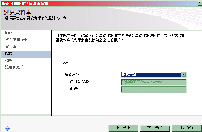 步驟07. 在「認證」頁面,選擇「服務認證」,點選「下一步」。